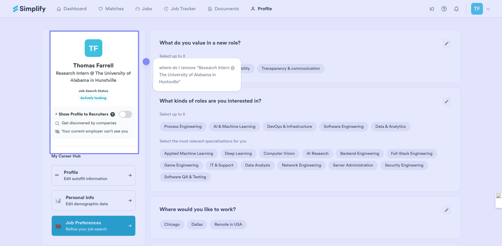 Simplify Profile